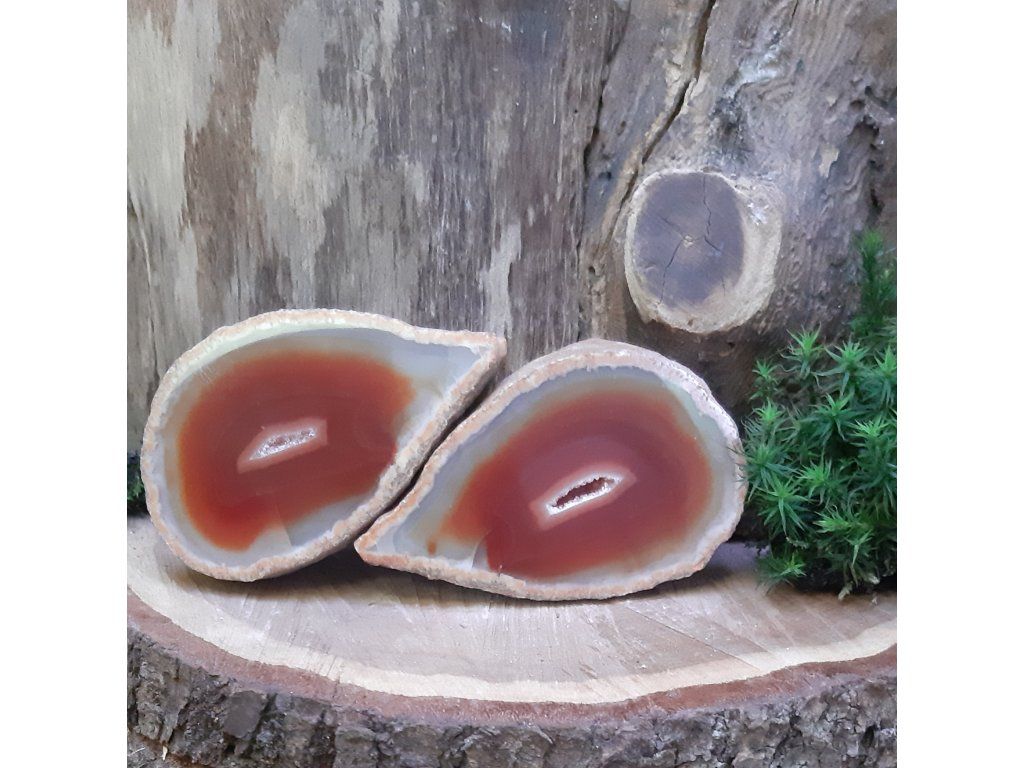 Objevte kouzlo achátových geodových párů, které vznikly rozdělením jedné přírodní geody na dva dokonale ladící díly. Každý pár nese jedinečnou kresbu, jemné krystaly uvnitř a energii propojení – ideální jako dárek pro partnerské duše, přátele, rodinu nebo jako harmonizační dekorace do vašeho prostoru.