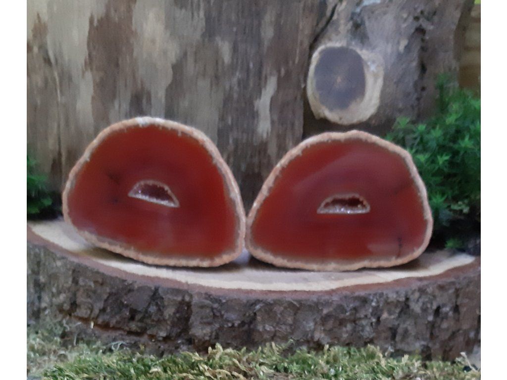Objevte kouzlo achátových geodových párů, které vznikly rozdělením jedné přírodní geody na dva dokonale ladící díly. Každý pár nese jedinečnou kresbu, jemné krystaly uvnitř a energii propojení – ideální jako dárek pro partnerské duše, přátele, rodinu nebo jako harmonizační dekorace do vašeho prostoru.