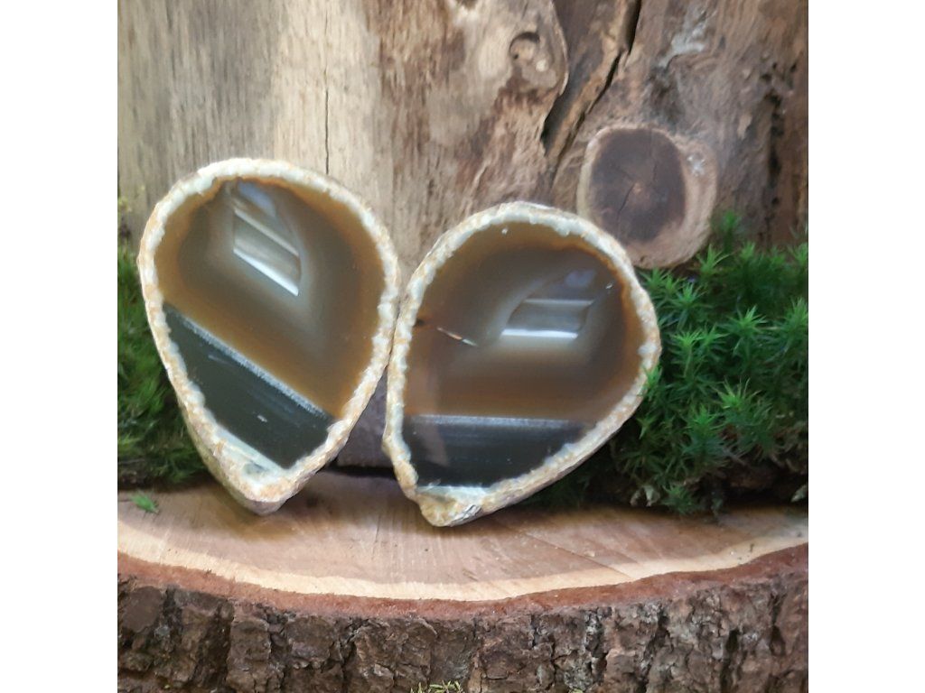 Objevte kouzlo achátových geodových párů, které vznikly rozdělením jedné přírodní geody na dva dokonale ladící díly. Každý pár nese jedinečnou kresbu, jemné krystaly uvnitř a energii propojení – ideální jako dárek pro partnerské duše, přátele, rodinu nebo jako harmonizační dekorace do vašeho prostoru.