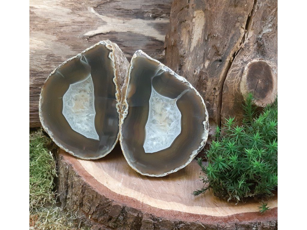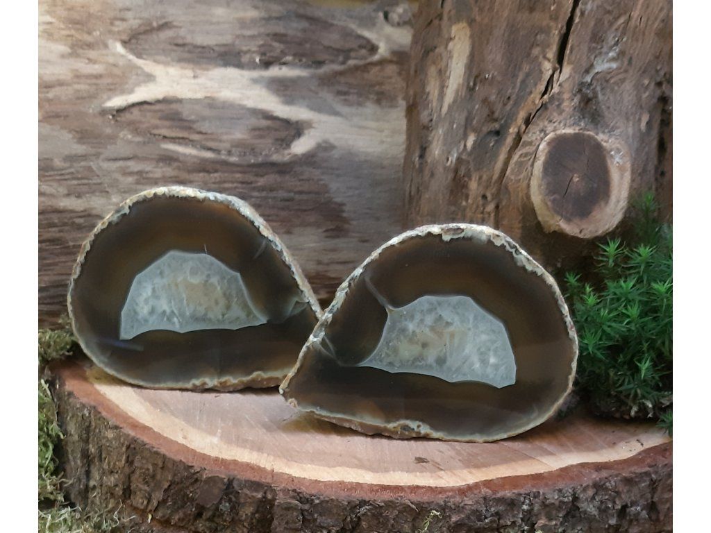 Objevte kouzlo achátových geodových párů, které vznikly rozdělením jedné přírodní geody na dva dokonale ladící díly. Každý pár nese jedinečnou kresbu, jemné krystaly uvnitř a energii propojení – ideální jako dárek pro partnerské duše, přátele, rodinu nebo jako harmonizační dekorace do vašeho prostoru.