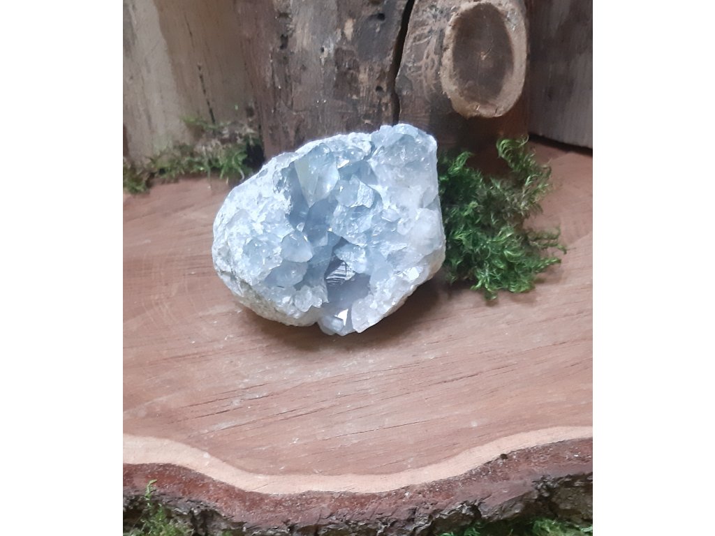 Objevte kouzlo družky celestinu, krystalu známého svou čistou andělskou energií a jemným, uklidňujícím vyzařováním. Tento nádherný minerál v odstínech světle modré působí jako tichý průvodce klidu, harmonie a duchovního spojení.