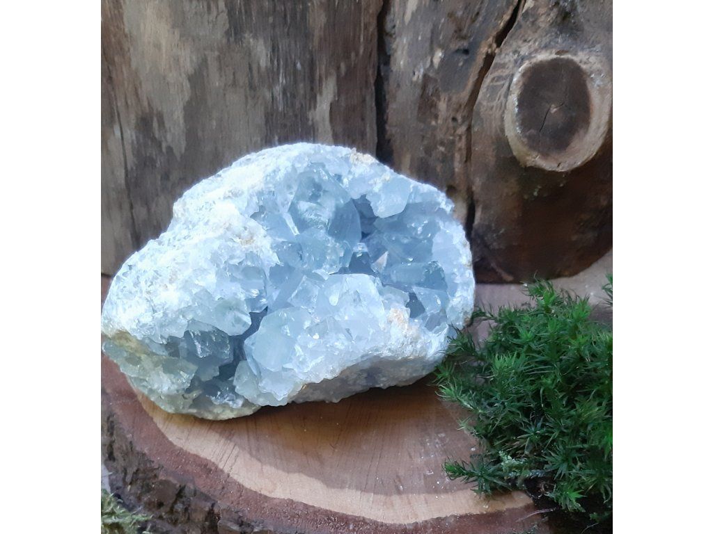 Objevte kouzlo družky celestinu, krystalu známého svou čistou andělskou energií a jemným, uklidňujícím vyzařováním. Tento nádherný minerál v odstínech světle modré působí jako tichý průvodce klidu, harmonie a duchovního spojení.