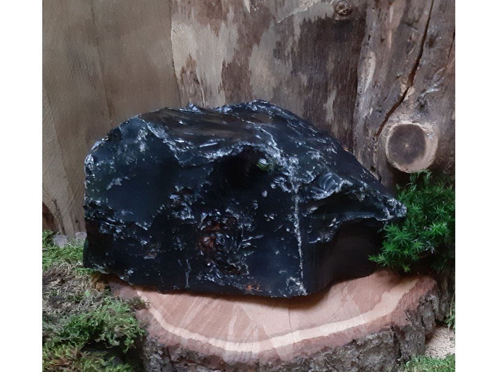Černý obsidián je silný ochranný kámen vzniklý rychlým ztuhnutím lávy. Jeho intenzivní energie působí jako zrcadlo duše – odhaluje pravdu, čistí hluboké bloky a chrání před negativními vlivy. Surová forma obsidiánu umocňuje jeho očistnou a transformační sílu.
