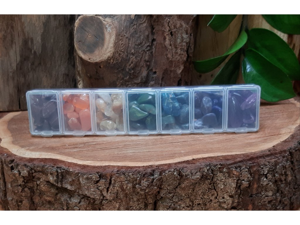 SADA obsahuje 7 barevných druhů tromlovaných kámenů ve velikosti 0,5-2 сm: