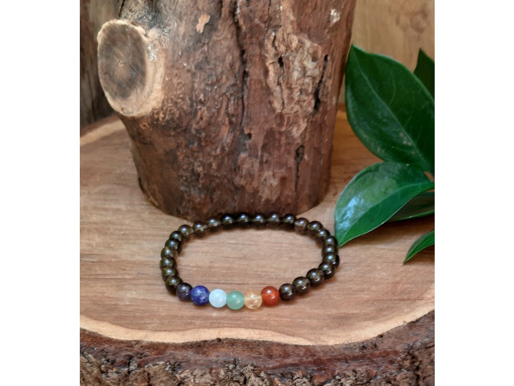 Náramek čakrový záhněda-unisex-Vel. S obvod 18 cm-kuličky 6mm