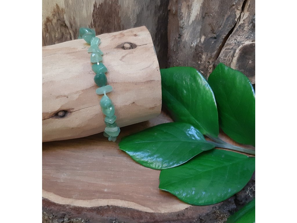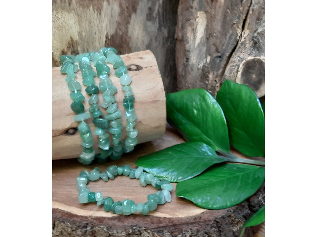 Náramek ze sekaných, tromlovaných kousků polodrahokamů, navlečených na gumičce. Je částečně roztažitelný a pružný.