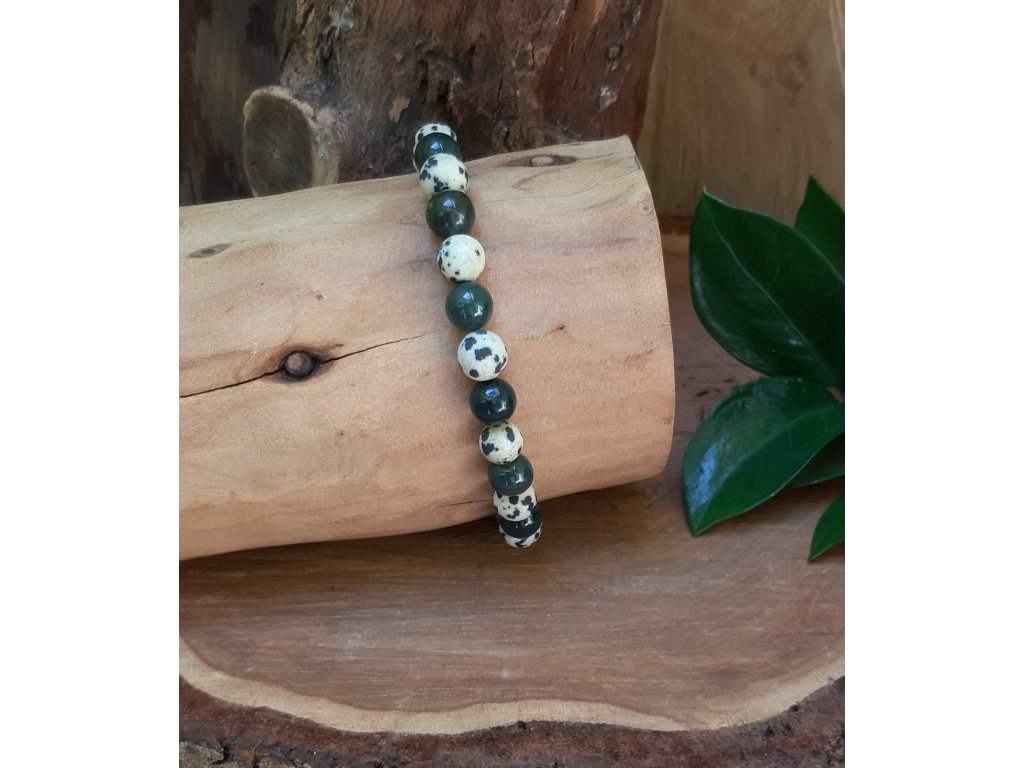 Pánský náramek Achát mechový-Jaspis dalmatin-8mm kuličky