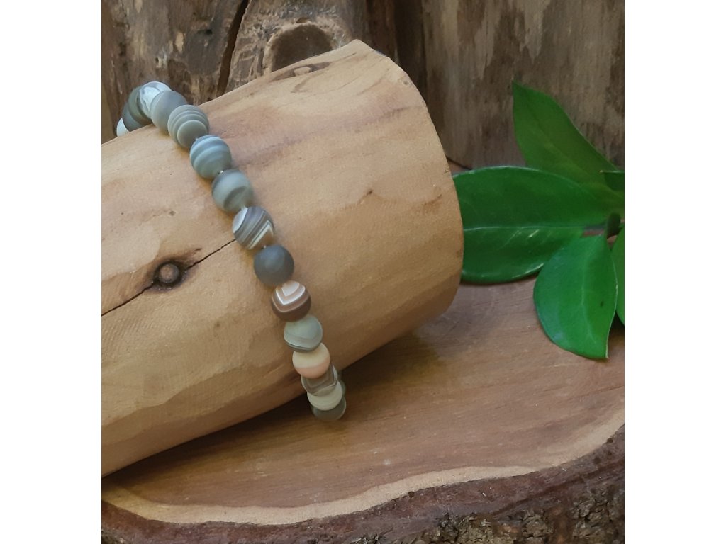 Pánský náramek Achát šedý Bostwana-matný-8mm kuličky