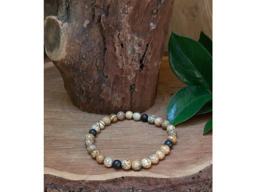 Pánský náramek Jaspis obrázkový-šungit- 6 mm kuličky
