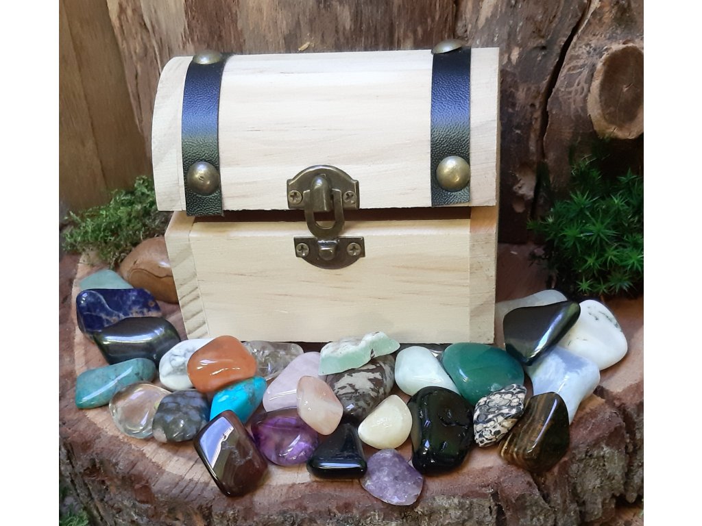 Polodrahokamy v truhličce pro znamení Vodnář -30 druhů